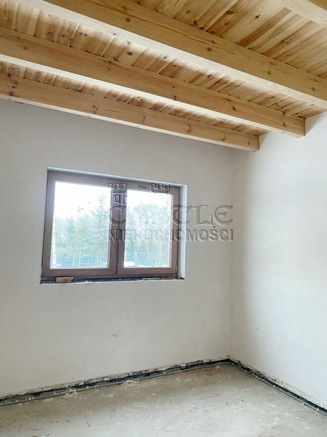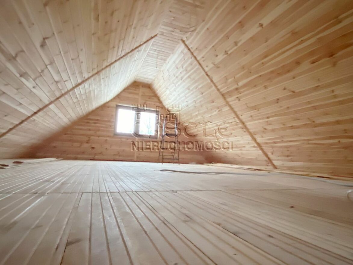 Okna trzyszybowe, poddasze wykończone drewnem.